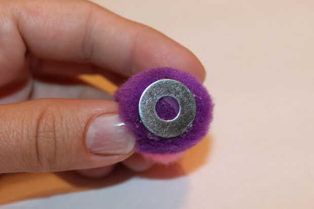 Poner pegamento caliente en una lavadora y pegarse a los pies de pom pom!