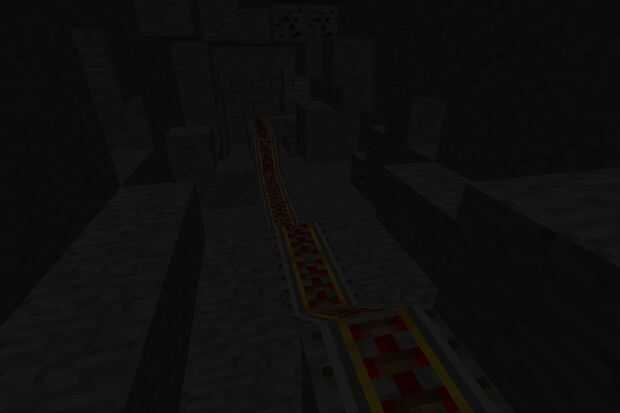 Ahh! Este canal parece un túnel de vagoneta que conduce a alguna parte. Esto fue lo más difícil para construir en gran medida! Desde su origen a la fragua, tenía que trabajar completamente de conjeturas, encontrar la mejor manera para mover los carros sin limpiando el diseño para arriba: P