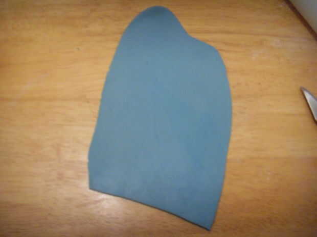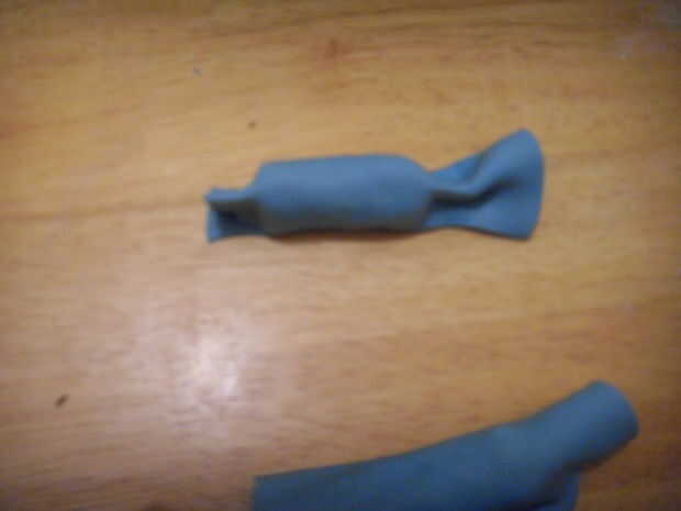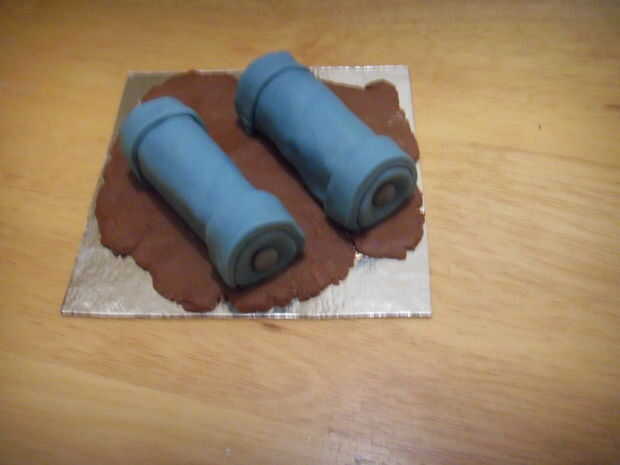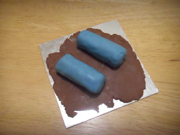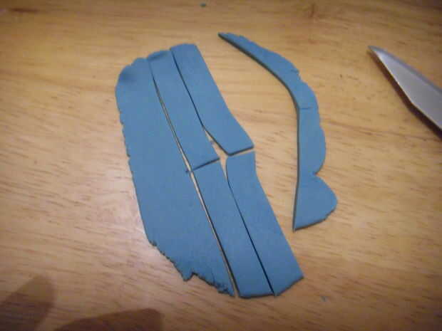 Estirar la pasta azul, cortar 4 tiras.