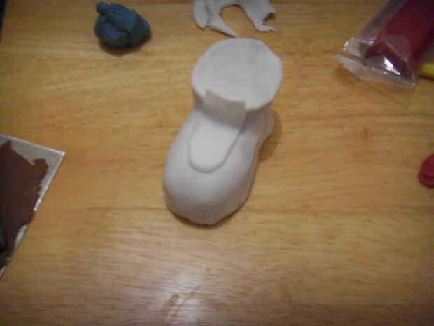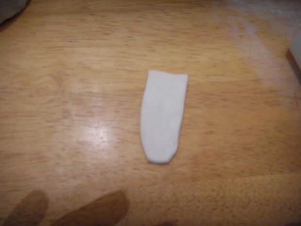 Banda de betún blanco, cortar un extremo redondeado para hacer la lengüeta de la bota.