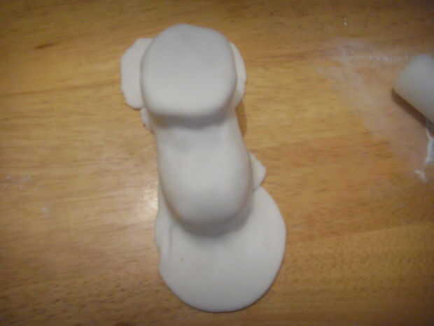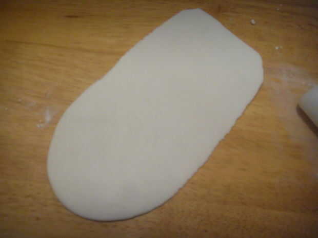 Suave glaseado de exceso a la superficie de trabajo y córtala. Suave alrededor de la forma de la bota con la mano.