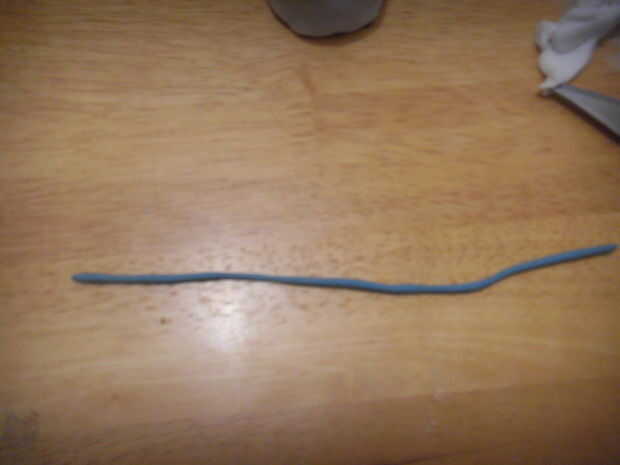 Rollo de un chorizo largo y fino de pasta azul. Pegar alrededor del borde de la lengua.