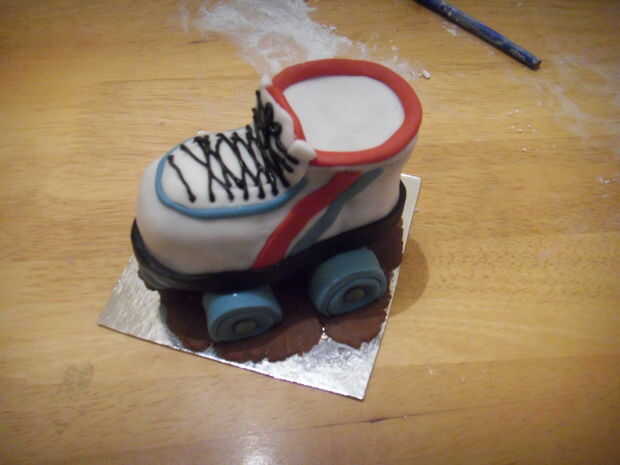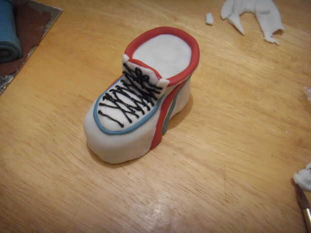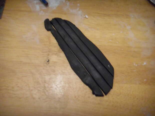 Estirar la pasta de azúcar negra, corte una tira larga delgada de negro.