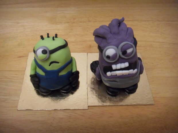 Materiales - pequeño cuadrado, rectangular o pan en forma de pastel, mermelada (opcional helando), verde, púrpura, gris, azul oscuro, blanco y negro pasta, glaseado de azúcar (para evitar que se pegue) de azúcar