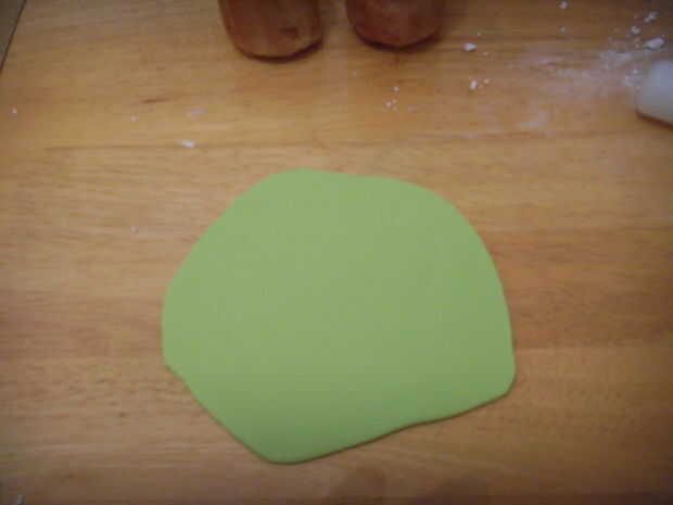 Suavemente Coloque la pasta sobre la parte superior de tu torta, liso por los lados con su palma.