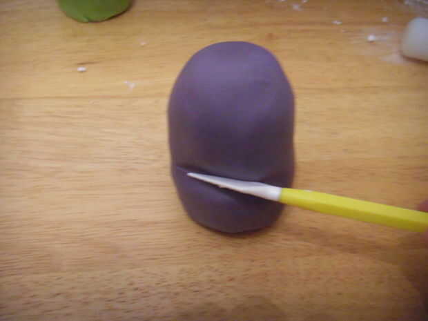 Cubrir la torta con la misma técnica que el súbdito verde, marca en la ranura de la boca.