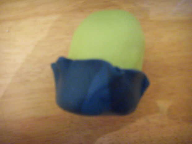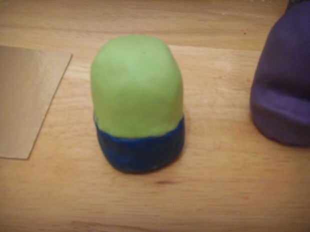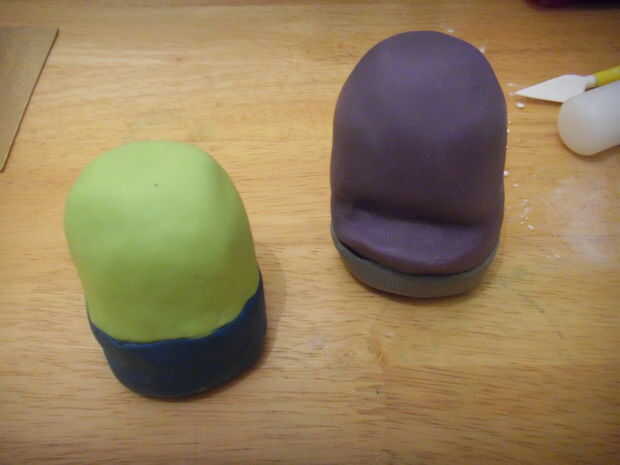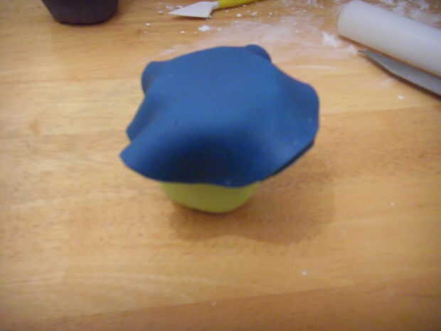 Cortar un círculo de color azul, liso en la parte inferior de la torta hacia arriba.