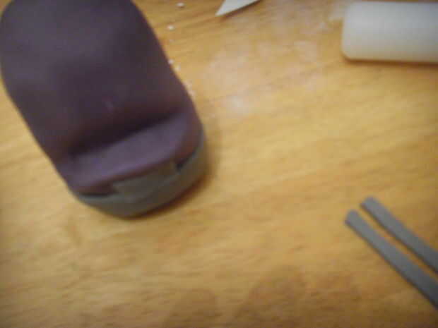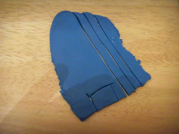 Extienda el glaseado azul más y cortar 2 tiras de largo y estrechas y un pequeño rectángulo.