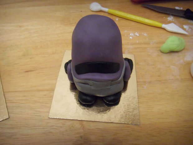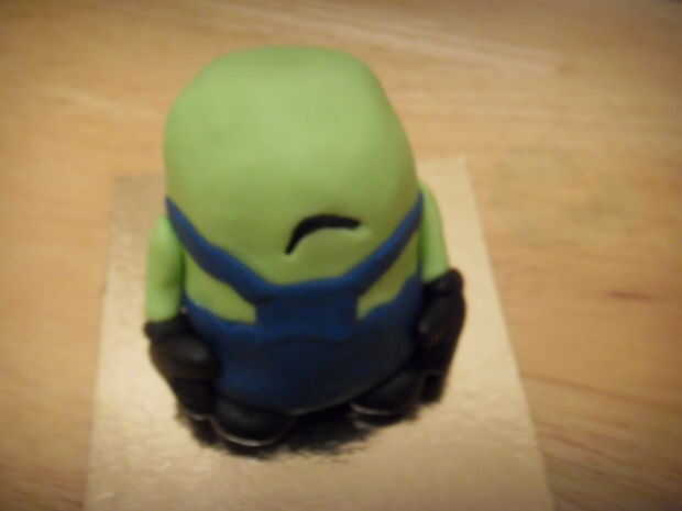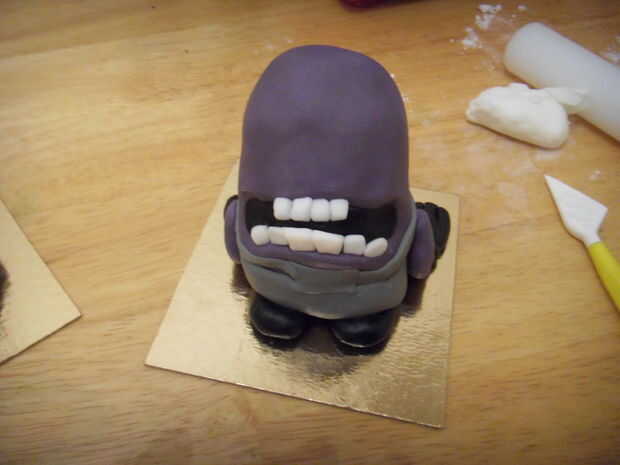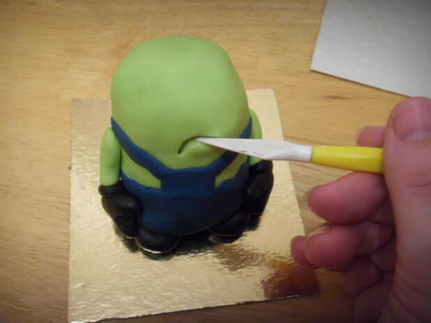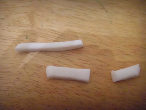 Rodillo hacia fuera algo de blanco con un rodillo, dejando la pasta 1 / 2cm de espesor. Cortar el rectángulo para los dientes de diferentes tamaños.