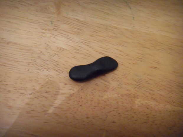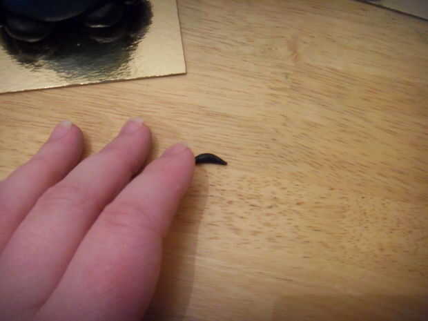 Una salchicha gorda de negro del rodillo, aplanar en forma de cacahuete por aplastamiento de ambos extremos.