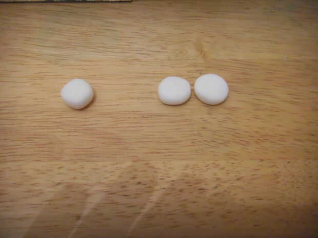 Rodillo 3 salchichas medio gris, aplanar y pegar alrededor de los ojos como gafas.