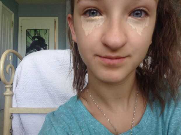 Usar tu corrector preferido y mezcla de pincel para aplicar el corrector en forma de triángulo debajo del ojo.