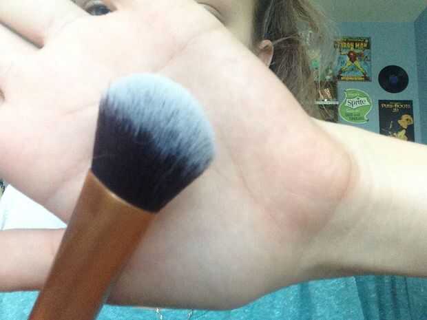 Utilice el cepillo para mezclar pequeños círculos alrededor de los ojos