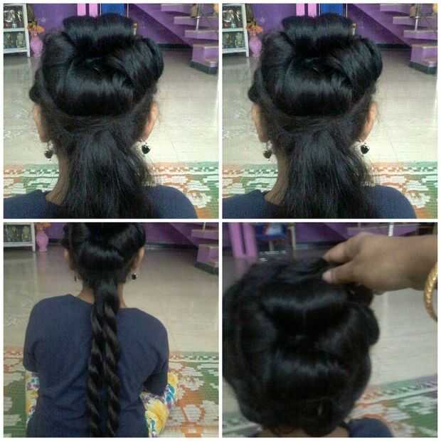 7. una vez terminado el trenzado trenzas, reúna las trenzas y el rodillo el rizo rollos y fije los extremos con horquillas.