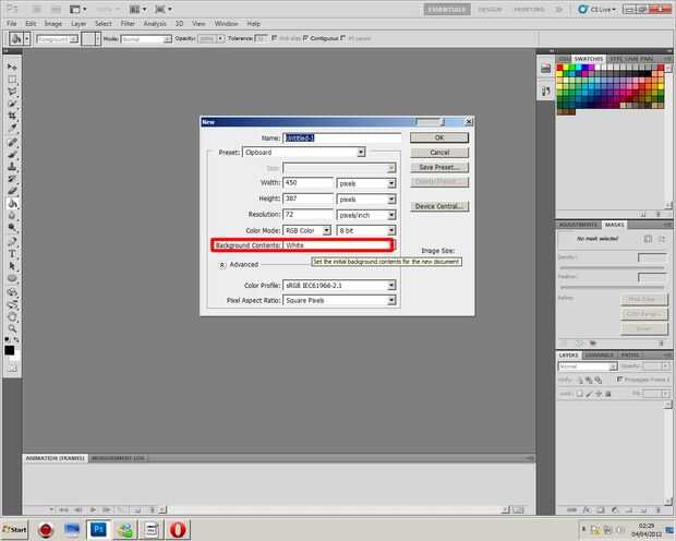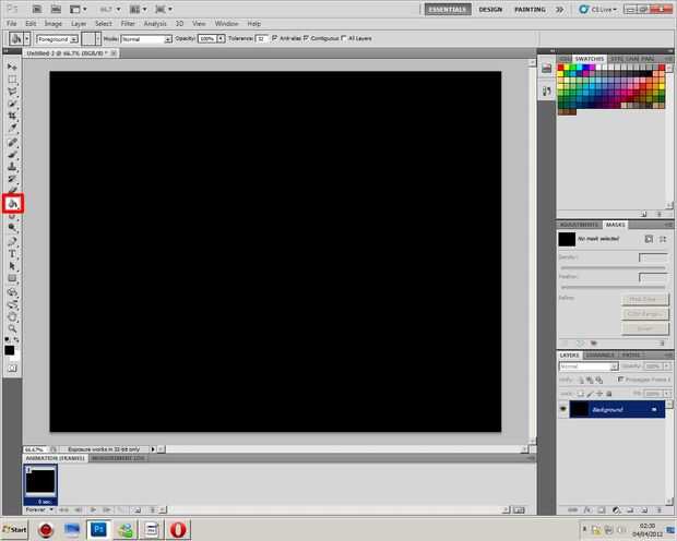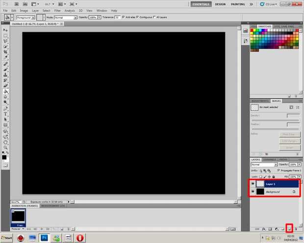 1. abrir un documento nuevo en Photoshop, 2. hacer cualquier tamaño que desee, 3. donde dice "Contenido de fondo" establece en blanco, 4. Haga clic en OK, 5. Utilice la herramienta Cubo de pintura para hacer la capa de fondo negro 6. crear una nueva capa transparente