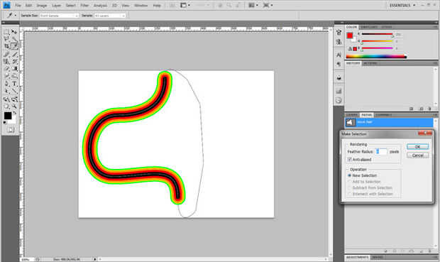 Haga clic en el capa de ruta de trabajo y elegir "Hacer selección". A la configuración predeterminada, haga clic en Aceptar. Esto seleccionará la parte del dibujo en el interior. Golpe borrar para deshacerse de él.