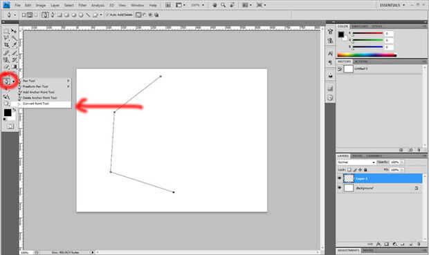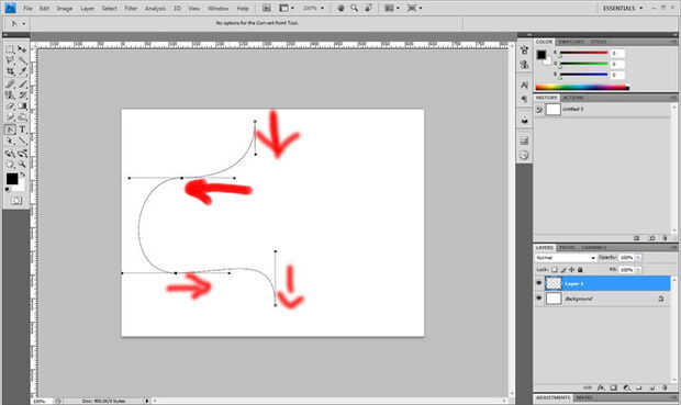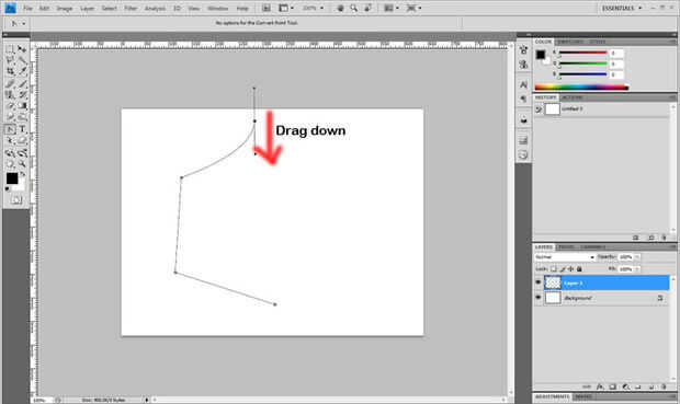 III.) Convertir punto herramienta; A las líneas de la curva, haga clic y arrastre los puntos de anclaje.