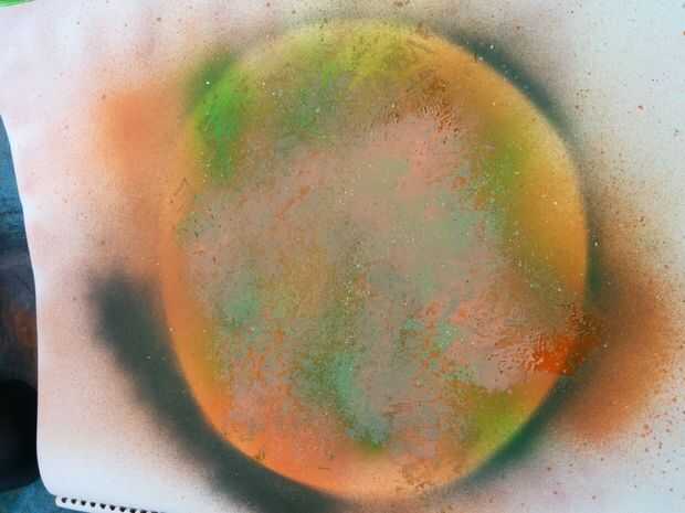 pintura en aerosol naranja en el círculo negro. (Asegúrese de que hay hay blanco).