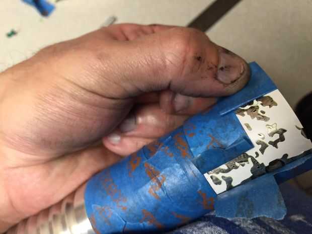Antes de llegar al final, usted querrá empezar a pelar la cinta en el borde partida por lo que no se aplican ninguna de la calcomanía en la parte superior la cinta. Así que ahora es el momento para presionar todo bien excepto al final.