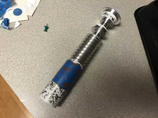 Sólo tener en cuenta, como dije antes. NO pintura!!!! No quiero arruinar todo el trabajo que hiciste. Un ligero velo de pintura en aerosol para cubrir apenas el sable de luz es todo lo que se necesita!