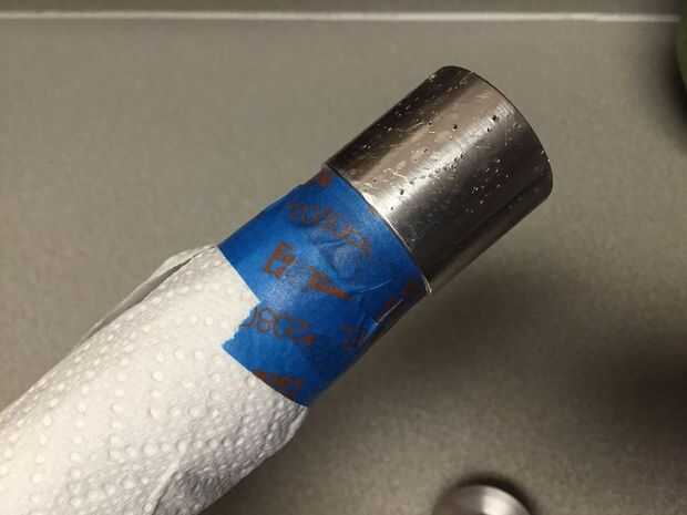 A continuación, cinta fuera un borde limpio en el labio del booster, luego Envuelva el resto del sable en una toalla de papel y cinta hacia abajo para que se expone sólo la sección de refuerzo.