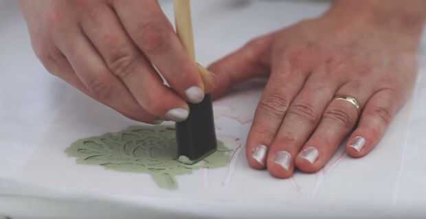 Nos gusta usar nuestros cepillos cera para estarcir, pero también puede utilizar un cepillo de espuma igual que Rosanne en estas fotos. Si eres mano pintura, puede usar cualquier cepillo de cerdas sintéticas usted es cómodo con.