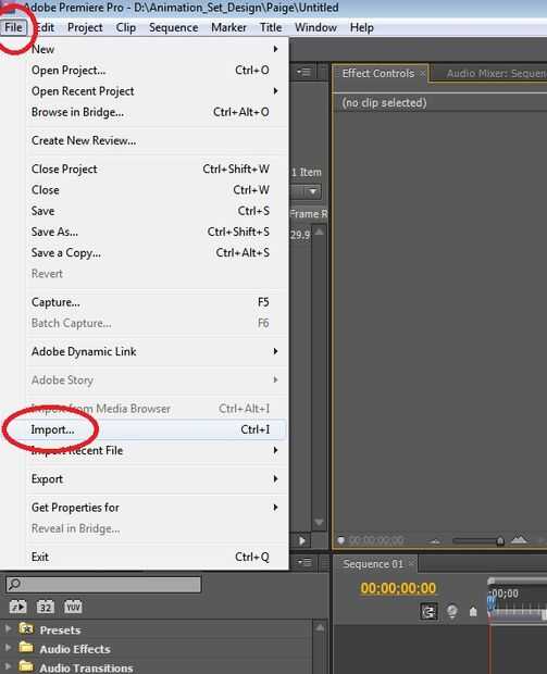 En la parte superior izquierda de estreno, haga click en 'file' y luego ir a "Importar..."