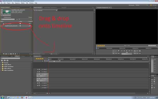 Simplemente puede arrastrar y soltar a la línea de tiempo.