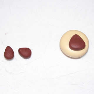 Siguiente, bolas de arcilla marrón en forma de lágrima de forma dos de la cantidad más pequeña (aproximadamente la mitad el hocico). Estos serán los puntos de vista.