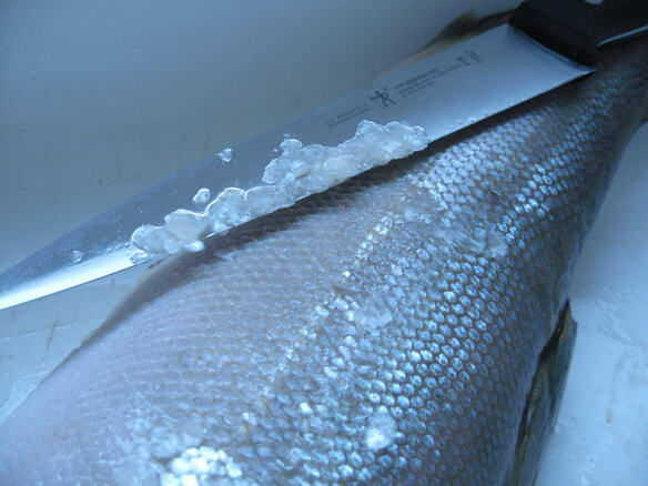 La escala de los pescados. Tomar un cuchillo y raspar raspar hacia atrás todas las escalas. Hay una herramienta especial para ello pero nunca lo he probado y después de escalar como muchos peces como estoy tentado a comprar uno. Yo he visto en uso en línea y parece que sería más rápido y más fácil con los dedos. No te preocupes si no te todas las escalas solo apagado, usted apenas necesita la mayoría ido.