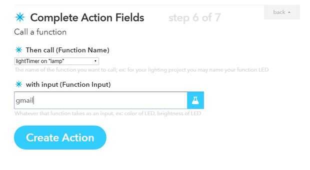 - Seleccione temporizador de luz en el menú desplegable. En la entrada de función, escriba gmail.