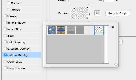 Ahora vuelve al archivo creado antes. Usted tendrá que hacer Superposición de motivo en la capa que tienes ahí.