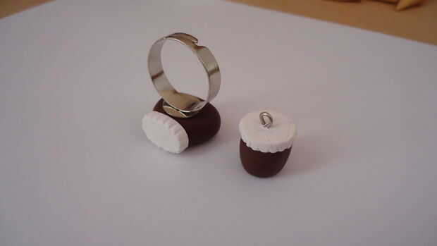 Deje su Nutella(s) refrescarse después de que hecho de la hornada. Entonces, si usted está haciendo nada más que simples miniaturas, es el momento de añadir resultados, gire el Headpins y así sucesivamente. Me estaba haciendo un anillo y un collar, por lo que es lo que he añadido.