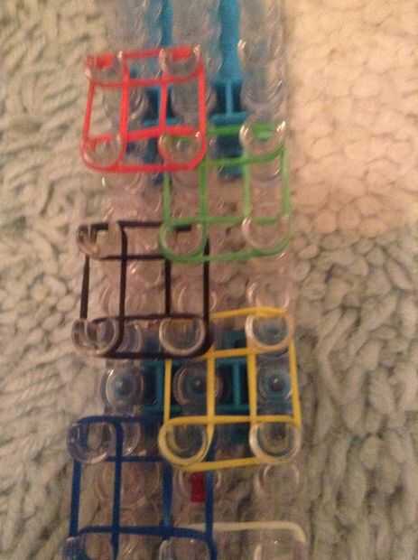 Esto es una pulsera de telar fácil que se hace en un telar del arco iris.Esto podría ser el patrón de escalera pero no agregue bandas en la fila media peg. Este es mi primer tutorial en un telar del arco iris.Mi último tutorial: (Espina de pescado)Co