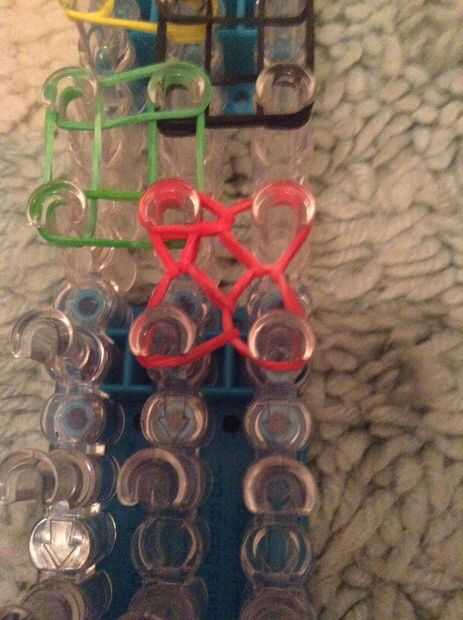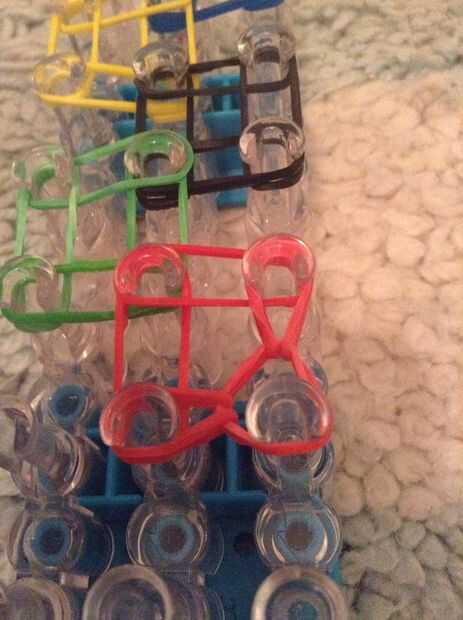 Esto es una pulsera de telar fácil que se hace en un telar del arco iris.Esto podría ser el patrón de escalera pero no agregue bandas en la fila media peg. Este es mi primer tutorial en un telar del arco iris.Mi último tutorial: (Espina de pescado)Co