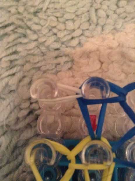 he modificado este video tutorial para crear una pulsera bigote! ¡ Disfrute!Paso 1: Se necesita: una tira de las clavijas de un telar del arco iris, dos colores de bandas (mina son de color rojo para las bandas de encuadre y plata para las bandas de