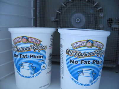 Esta receta es para dos envases de 1 kg.  Me Coloque las tapas de los envases y ponerlos en el deshidratador. Si dejas las tapas se acabará con una piel de pesado en la parte superior! Por supuesto no sabía que la primera vez que utilicé mi deshidratador para el yogur, pero como yo siempre digo, "lección aprendida."