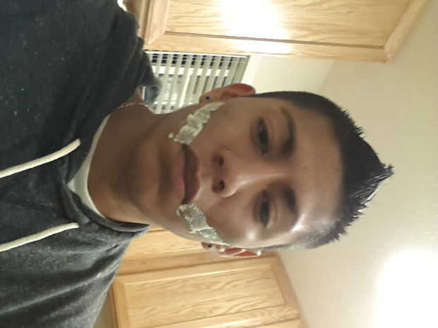 Paso 2: aplicar látex líquido a cada lado de la boca y las mejillas y coloque las correas de papel. Dejando pequeños huecos en el medio (dejé 2 huecos). Una vez completamente seco aplicar látex líquido otra vez encima de las tiras de papel tiras de la cubierta y asegúrese de que las toallas de papel se unen totalmente. Aplicar alrededor de los huecos así para que endurezca, dejando sólo un espacio pequeño para los pasadores de adjuntarse.
