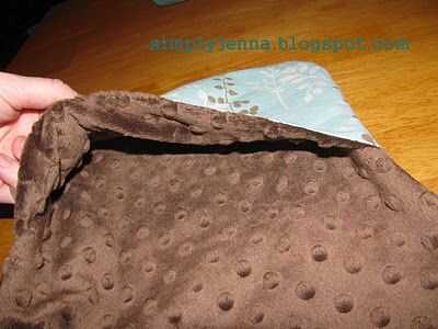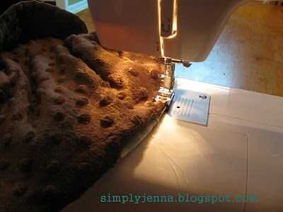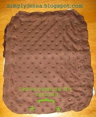 Paso 8: Pin y coser las capas juntas, lo que permite un 3" abertura para dar vuelta. Me permite margen de costura de 1/2 al coser. Tenía que ir con el flujo con la costura de los bordes porque cuando usted trabaja con minky material (tela marrón), se mueve mucho cuando se cose: