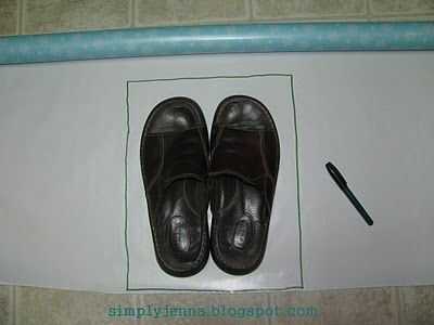 Paso 1: Para hacer un patrón, llevó a algunos de mis zapatos de maridos y trazado a su alrededor en algún papel de regalo de Navidad. Tenía una agradable cuadrícula en la parte posterior del papel. Permitió unos 1" subsidio de alrededor de los zapatos. El patrón es aproximadamente 12 x 15.