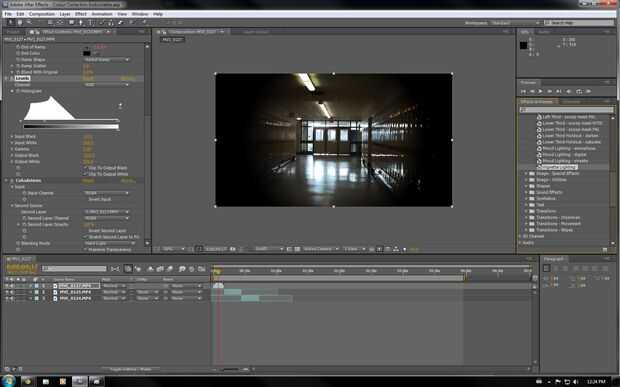 Para cambiar los diferentes temas que usted puede ir con lío alrededor con el gráfico de línea. Cada punto cambia los diferentes niveles de colores y sombras. Puede editar cada canal por separado o todos juntos (RGB) o ambos. Lío con diferentes valores por punto para cambiar el sentimiento general del material de archivo. Para darle una mirada fresca puede Agregar una viñeta, que fue con mi primera escena, un pasillo largo oscuro. Usted puede hacer esto mediante la selección de ajustes preestablecidos de animación > imagen - creativo > iluminación de Vignette y arrastrando y soltando en su comp.