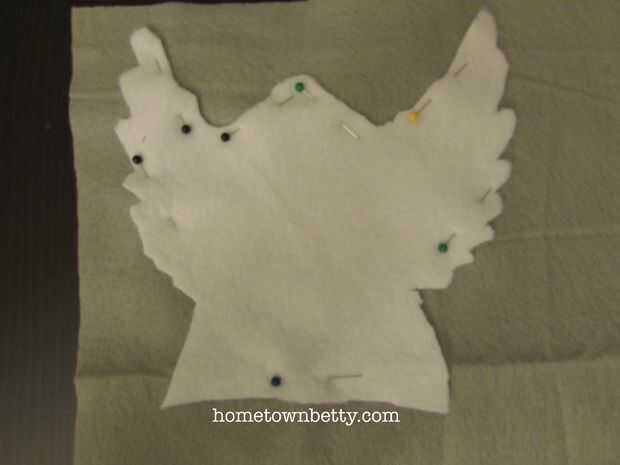 2. cortar el contorno de Eris. PIN y corte contorno de Eris en fieltro blanco. (En mi caso, utilicé lana blanca sobrante).