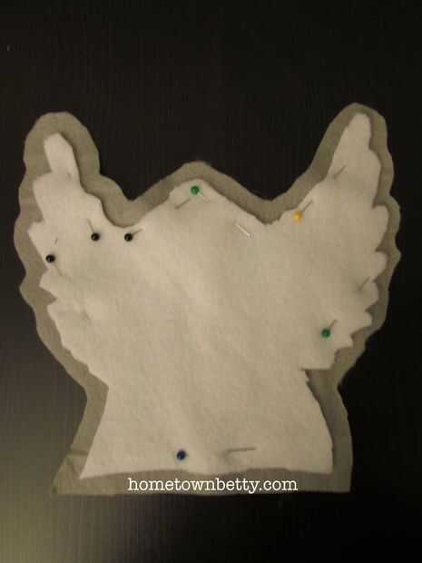 3. corte otro contorno dejando un 1/4-1/2 pulgada ribete en fieltro gris. PIN y coser blanco fieltro pieza gris fieltro pieza.