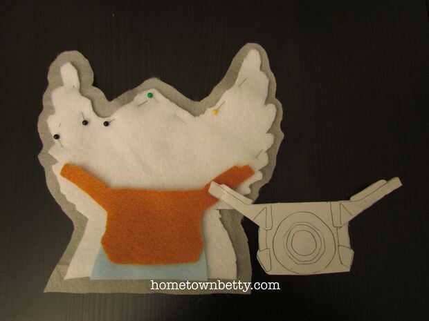 5. recorte de la placa del pecho. Prender y cortar forma en fieltro oro.