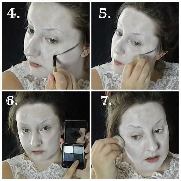 Tutorial de maquillaje/disfraz de Halloween de Edward ScissorhandsPaso 1: la piel.1. primero aplicar Lumene Naturalcode BB-Fundación a mi cara.2. también utilizo polvo.Paso 2: La piel parte 2.3. 4. 5. y 6. Usar sombra de ojos blanco y aplican a, b, c