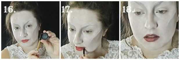 16. 17. y 18. Yo uso pintura de cara negra e hice el color rojo un poco más oscuro. Puede omitir esta parte si desea, o usar lápiz labial oscuro.