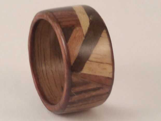 Me encanta la apariencia de los anillos de madera curvada, pero los únicos que pude encontrar son un poco claras para mí. ¿Si voy a tener un anillo de madera, que tiene que mostrar mi habilidades un poco, derecho? Así que había tiempo y paitence, así que pensé que sería tomar una muesca y mostrarle cómo se hace. Ya que no pude encontrar un tutorial muy detallado cuando casé, pensé que esto podría ser útil. Aunque tengo un torno, no lo uso de estos anillos. La belleza del anillo de madera curvada es la simplicidad y facilidad de construcción con mínimas herramientas. Hice este anillo y tutorial fotos en mi sala de estar en la mesa de centro en 4 horas.