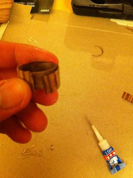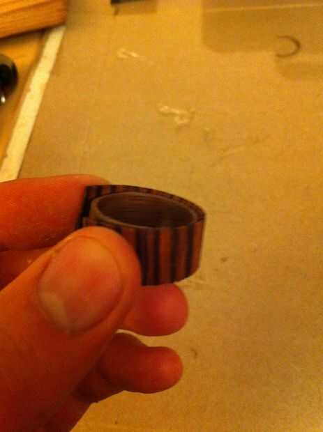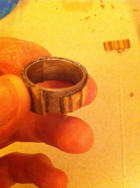 3. pegue en la chapa como tú envuelto el anillo. Otra vez Asegúrese de que usted seco-quepa lo para que pueda obtener directamente. Se puede ver no consigo exactamente recta, pero esta bien porque yo voy a añadir más madera entre de todos modos.