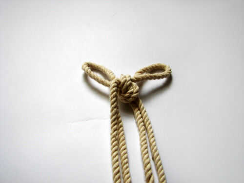 ¿Cómo hacer dos cable simple? Como eso, tan simple, tie este hilo de dos cables. Después de esto, tendremos algo parecido a un gancho.