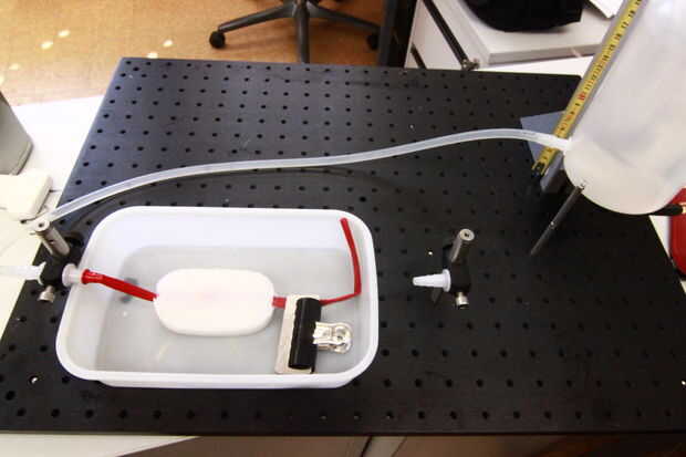 , Hemos creado un fantasma de tejido-como el ultrasonido utilizando un compuesto de silicio, silicio más delgado, un drenaje de látex penrose y la celulosa. La textura de echo de este material simula la grasa y tejido óseo, que se componen en un brazo y el drenaje de látex simula la nave que bombear sangre. Fig.13 muestra la configuración global para simular un brazo y Fig.14 muestra lo que puede ver una máquina de ultrasonido.